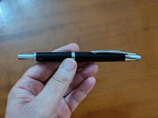 La Jinhao 20, come detto poc'anzi, è una penna senza cappuccio ma con un meccanismo a scatto in grado di far uscire e rientrare il suo pennino. Non passano inosservate neanche la sua linea molto semplice e slanciata e la clip integrata nel corpo della penna stessa. È disponibile in molti colori (sia come fusto che come clip e rifiniture varie: dorata, argentata, nera…); io ho scelto quella nera e con clip e rifiniture argentate.
