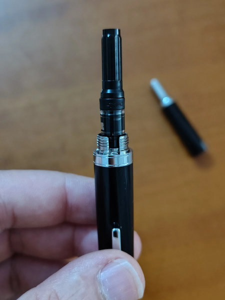 Insieme alla penna ho ricevuto anche un converter (già inserito e pronto all'uso). E, per dirla tutta visto che non mi piacciono le cartucce (che trovo molto limitante nella scelta degli inchiostri), quella del converter è il mio metodo preferito di inchiostrare la penna perché mi permette di usare gli inchiostri in bottiglia/calamaio.