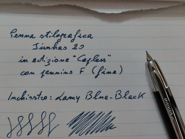 Qui sotto vi lascio la mia "prova di scrittura": ho usato, ovviamente oltre alla Jinhao 20, l'inchiostro Lamy Blue/Black (il mio inchiostro preferito) e carta Rhodia puntinata da 80 grammi.