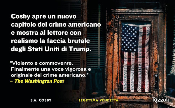 Con Legittima vendetta S.A. Cosby apre un nuovo capitolo del crime americano e mostra al lettore con realismo la faccia brutale degli Stati Uniti di Trump, dove il seme dell'omofobia e del razzismo è sempre pronto a germogliare.