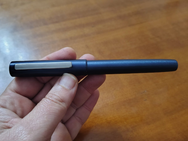 Il suo corpo, fatto da linee pulite e senza fronzoli, è un unico pezzo monoblocco in alluminio anodizzato (opaco spazzolato) e con una finitura satinata che conferisce alla penna un feedback tattile molto morbido. Solo la parte dell'impugnatura è in alluminio liscio (per niente scivoloso).