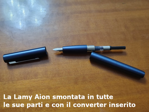 La Aion può essere inchiostrata, come tutte le stilografiche Lamy, con le cartucce d'inchiostro Lamy T10 (ed una, con inchiostro blu, è già compresa in confezione), o con il converter Lamy Z27: un "prodottino" semplice semplice ma in grado di garantire un facile riempimento con inchiostri in boccetta/calamai.