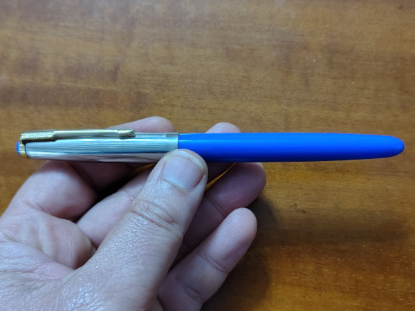 Il corpo è tutto in plastica sottile (anche troppo) ma assolutamente confortevole. Il cappuccio è interamente in metallo con la forma della clip che richiama palesemente quello della Parker 51.